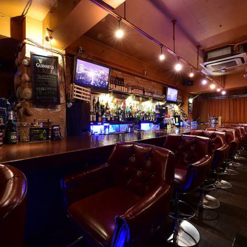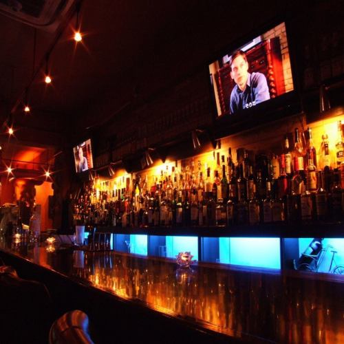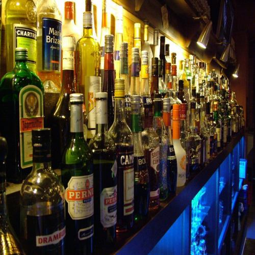 毎月変わるオリジナルカクテルから定番のカクテルまで、お好みの1杯を心を込めてお作り致します。バーカウンターにズラーッと並んだボトルは市川随一の種類の豊富さです。